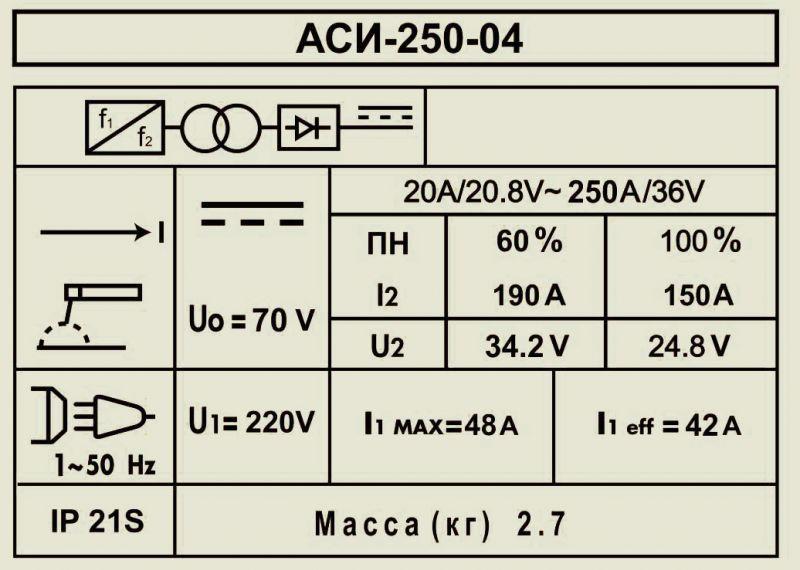 Сварочный аппарат Диолд АСИ-250-04 инвертор ММА DC 7.2кВт