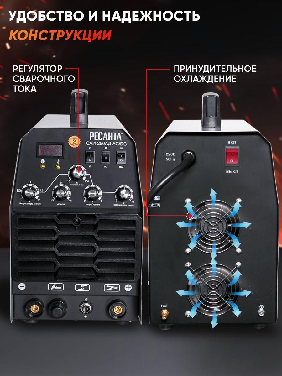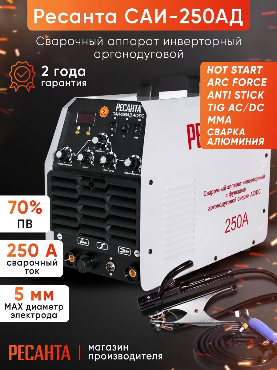 Сварочный аппарат Ресанта САИ-250-АД инвертор ММА DC/TIG 10кВт / 4dealer.ru
