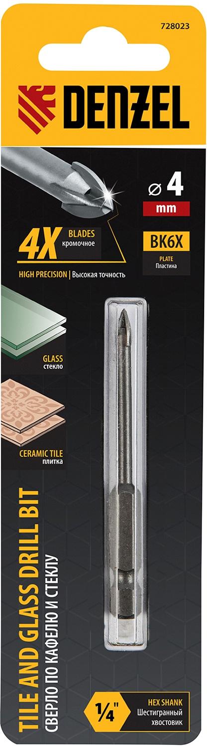 Сверло Denzel 728023 по плитке Д=4мм (1пред.) для дрелей / 4dealer.ru