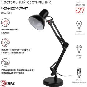Светильник настольный Эра N-214-<nobr>E27-40W-BK</nobr> черный<BR><BR><BR>Внешний вид и/или характеристики товара могут быть изменены производителем в соответствии с производственным процессом.