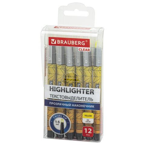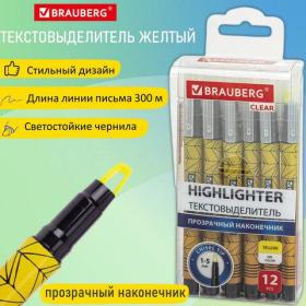 Текстовыделитель с прозрачным наконечником BRAUBERG "Clear", ЖЕЛТЫЙ, линия 1-5 мм, 152424 / 4dealer.ru