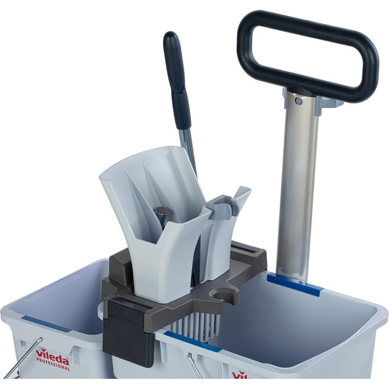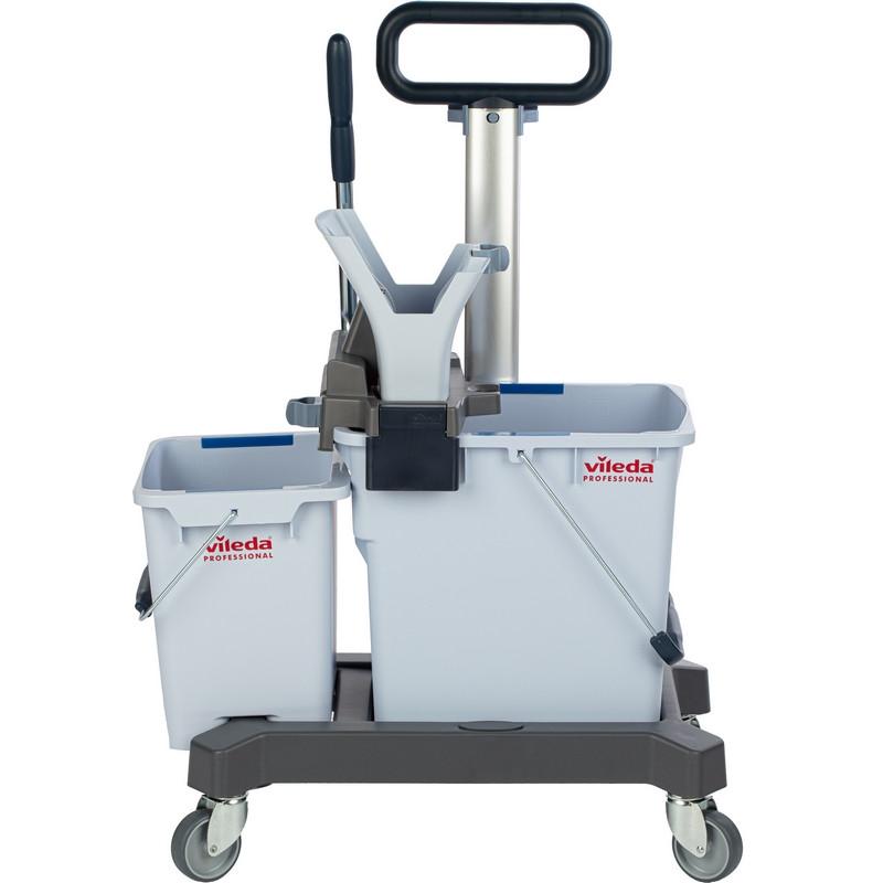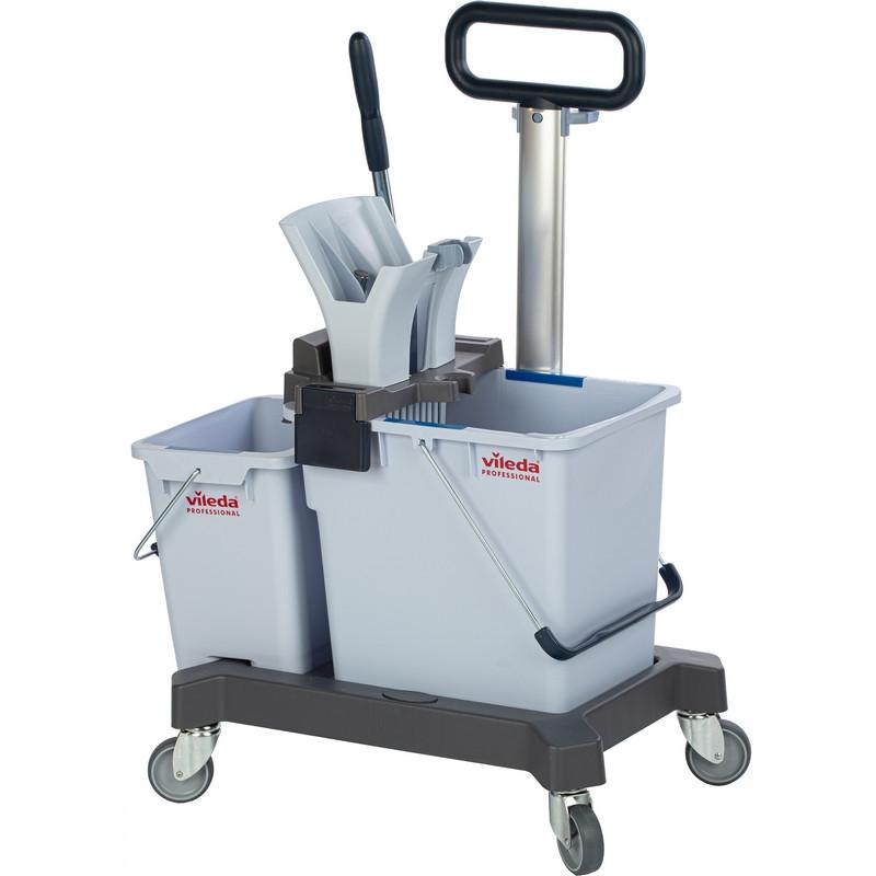 Тележка Vileda УльтраСпид Про — это уникальная профессиональная система с двумя вёдрами на платформе и запатентованным высокоэффективным отжимом мопов с креплением на ремни. Предназначена для профессиональной влажной уборки для объектов площадью от 100 кв/м. Она делает уборку быстрее, чище и легче по сравнению с другими ведёрными системами: Позволяет убирать 10 кв/м за 27 с. Отжимает 40,5% влаги с мопа. Платформа универсальная, лёгкая. Позволяет помыть до 500 кв/м, используя всего 13 литров на два ведра: 8 л моющего раствора или воды и 5 л воды для ополаскивания.<br>Это самая современная и эффективная система уборки методом «ведро-вода». Подходит практически под все объекты. Одноведёрная система легко превращается в двухвёдерную. Компактная и эргономичная, не требует специального места для хранения. Каждый элемент системы эргономичен: систему легко собирать, легко переносить, легко использовать.<br>Особенности и преимущества<br>Двухвёдерный метод уборки позволяет вывести чистоту полов на новый уровень. Больше нет необходимости постоянно ходить к источнику воды и менять воду. Система экономит время, силы и повышает эффективность работы персонала. Позволяет быстро и эргономично убирать помещения со скоростью до 10 квадратных метров за 27 сек. Запатентованный туннельный отжим на 50% эффективнее обычного вертикального отжима. Благодаря этому вымытые полы сохнут быстрее и могут использоваться практически сразу. Он настолько сильно отжимает моп, что нет необходимости протирать пол насухо. Инновационный дизайн отжима позволяет выжимать насадки с меньшими усилиями и без необходимости наклоняться к ведру.<br>Прочные вёдра со специальным широким сливным носиком и ручкой для переноски. Удобная транспортировочная ручка позволяет комфортно перевозить систему по объекту. Устойчивая платформа для вёдер, которые при необходимости легко снимаются. Эргономичное крепление мопов на ремнях исключает необходимость их снимать для выжимания, что увеличивает скорость уборки. Сменные клипсы для цветового кодирования зон и исключения перекрёстных загрязнений. Возможность доукомплектовать подвесным ведром объёмом 6 л, перемещаемым на транспортировочной ручке. Гарантия качества от немецкого бренда.<br>Комплектация:<br>— Туннельный отжим УльтраСпид Про с рычагом.<br>— Платформа УльтраСпид Про с заглушками и колёсами.<br>— Ведро УльтраСпид Про 25 л.<br>— Ведро УльтраСпид Про 10 л.<br>— Транспортировочная ручка УльтраСпид Про в сборе.<br>— Клипсы цветового кодирования: синие 4 шт., красные 4 шт.<br>Область применения<br>Идеальна для уборки коммерческой и некоммерческой недвижимости: офисы, магазины, бизнес-центры, торговые и жилые комплексы, салоны красоты, аптеки, фитнес-центры, государственные учреждения. Подходит для помещений с высокой проходимостью площадью до 500 кв/м, таких как входные группы, санузлы, холлы, торговые залы, коридоры, лестницы, тех. помещения, профессиональные кухни, залы приёма пищи, номера в отелях и санаториях.<br>Характеристики:<br>— Размер: 60×38×85 см.<br>— Вес: 5,6 кг.<br><br>В инструкции указано несколько моделей с разной комплектацией и сборка должна осуществляться согласно приобретённой модели.