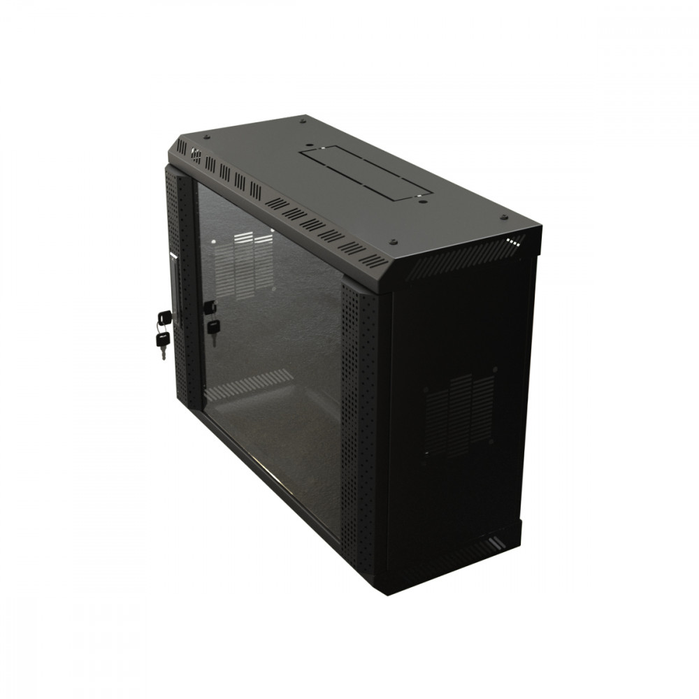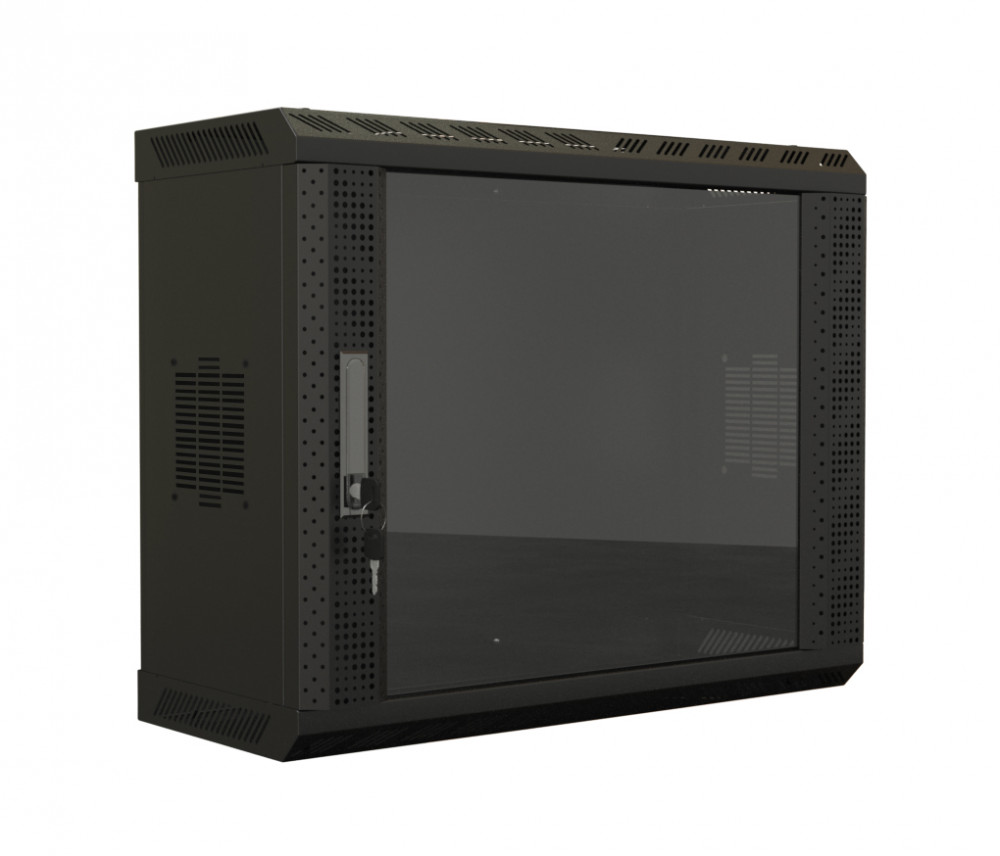 Телекоммуникационный настенный шкаф 19" 12U Hyperline TWS-1225-GP-RAL9004 стеклянная дверь черный / 4dealer.ru