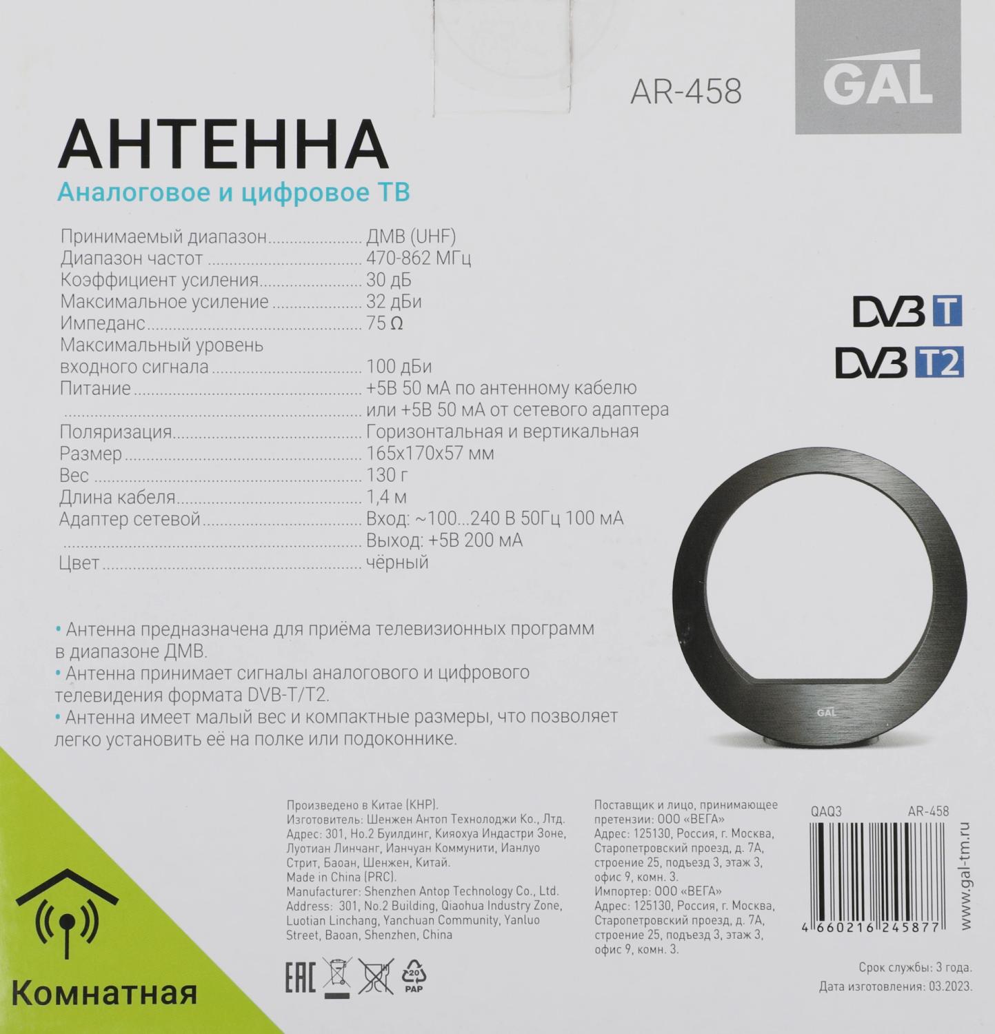 | Исполнение антенны | комнатная |