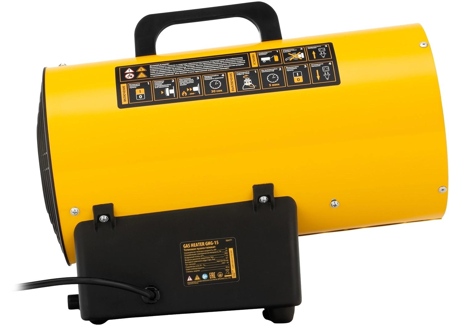 Пушка тепловая Denzel GHG-15 (96477) Поставляется с кабелем питания и вилкой. Внешний вид и/или характеристики товара могут быть изменены производителем в соответствии с производственным процессом.