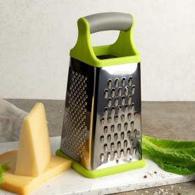 Тёрка четырёхгранная Nadoba Sava 11×10 22 см (725210)<br><br>Четырёхгранная тёрка предназначена для измельчения и натирания различных продуктов — от овощей и фруктов до сыра и шоколада. Рабочая часть изготовлена из нержавеющей стали, устойчива к коррозии и легко очищается. Четыре типа поверхности — крупная, мелкая, звёздчатая и с рифлёными продолговатыми прорезями — обеспечивают разнообразие функций для повседневной готовки. <br><br>Нескользящее силиконовое основание придаёт устойчивость и при необходимости может быть снято. Эргономичная ручка выполнена из нержавеющей стали. Изделие подходит для мытья в посудомоечной машине. Размер тёрки — 11×10×22 см, вес — 225 г.<br><br>— перед первым использованием требуется тщательно промыть изделия;<br>— хранить изделия в чистом, сухом виде;<br>— не рекомендуется использовать губки с абразивным слоем;<br>— не рекомендуется промывка изделий в посудомоечной машине с использованием моющих средств, в состав которых входит активный кислород.