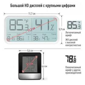 Термогигрометр Рэлсиб Ivit-2 – современный измеритель температуры и относительной влажности воздуха для помещений. Прибор обеспечивает высокую точность измерений благодаря новейшему сенсору швейцарской компании Sensirion.Термогигрометр снабжен большим ЖК-дисплеем высокой контрастности, занимающим всю переднюю панель прибора. Дисплей с углом обзора 160° обеспечивает четкую видимость показаний с любого положения.
