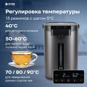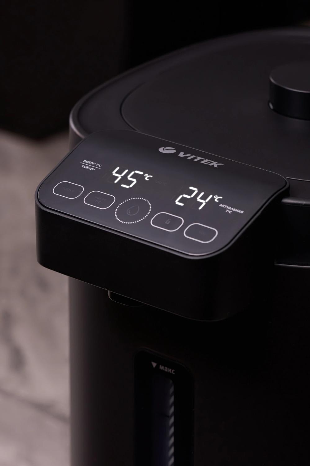 | Особенности | Установка температуры для любых нужд 40-100°С и поддержание температуры, розлив по кнопке и нажатием чашкой. На дисплее отображается установки и текущая температура воды . Блокировка от случайного нажатия для защиты от ожога и детей. |