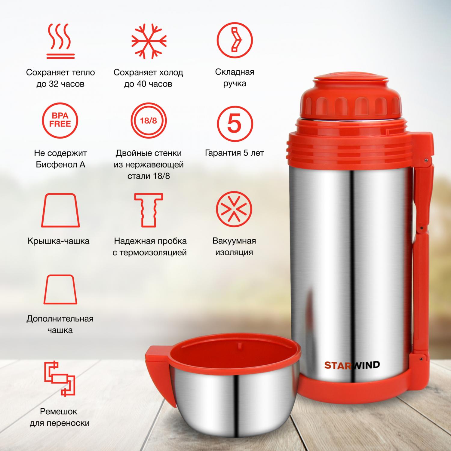 | Особенности | крышка-чашка, с ремешком, со складной ручкой |