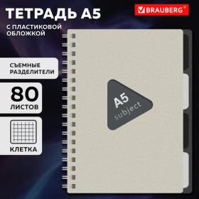 Стильная и практичная тетрадь BRAUBERG станет незаменимым помощником для старшеклассников, студентов и офисных сотрудников. Она идеально подходит для учебы, работы и повседневных записей, обеспечивая комфорт и удобство в использовании.Прочная пластиковая обложка надежно защищает внутренний блок от повреждений и влаги, продлевая срок службы тетради. Внутри — 80 листов высококачественной офсетной бумаги плотностью 70 г/м2 и белизной 100%, обеспечивающей комфортное письмо. Удобная линовка в клетку с полями помогает вести структурированные записи. Разделители в тетрадях помогают удобно организовать записи, благодаря им можно быстро находить нужную информацию. Это особенно полезно для студентов, офисных работников и тех, кто ведет многозадачную деятельность. Листы тетради надежно скреплены металлическим гребнем. Тетрадь формата А5 – это удобное и практичное решение. Она компактна, легко помещается в сумку или рюкзак, но при этом вместительна для удобного письма.