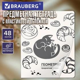 Предметная тетрадь BRAUBERG из серии "КОТ-НЕПОСЕДА" предназначена для учащихся средних и старших классов. Выполнена в стильном и лаконичном дизайне.Тетрадь по геометрии формата А5 с двойной обложкой: внешняя выполнена из высококачественного износостойкого прозрачного пластика, внутренняя – из качественной офсетной бумаги. Преимущество таких тетрадей заключается в том, что для сохранения внешнего вида не нужно покупать дополнительную обложку. На подкладных листах содержится справочный материал по предмету. Внутренний блок плотностью 60 г/м2 из офсетной бумаги содержит 48 листов в клетку с полями. Белизна блока - 100%. Скрепка надежно соединяет листы между собой.