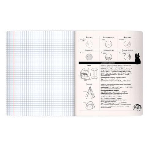 Тетрадь предметная КОТ-НЕПОСЕДА 48л, пластиковая обложка, ГЕОМЕТРИЯ, клетка, подсказ, BRAUBERG, 405532