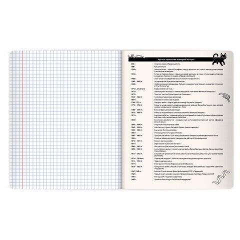Предметная тетрадь BRAUBERG из серии "КОТ-НЕПОСЕДА" предназначена для учащихся средних и старших классов. Выполнена в стильном и лаконичном дизайне.Тетрадь по истории формата А5 с двойной обложкой: внешняя выполнена из высококачественного износостойкого прозрачного пластика, внутренняя – из качественной офсетной бумаги. Преимущество таких тетрадей заключается в том, что для сохранения внешнего вида не нужно покупать дополнительную обложку. На подкладных листах содержится справочный материал по предмету. Внутренний блок плотностью 60 г/м2 из офсетной бумаги содержит 48 листов в клетку с полями. Белизна блока - 100%. Скрепка надежно соединяет листы между собой.