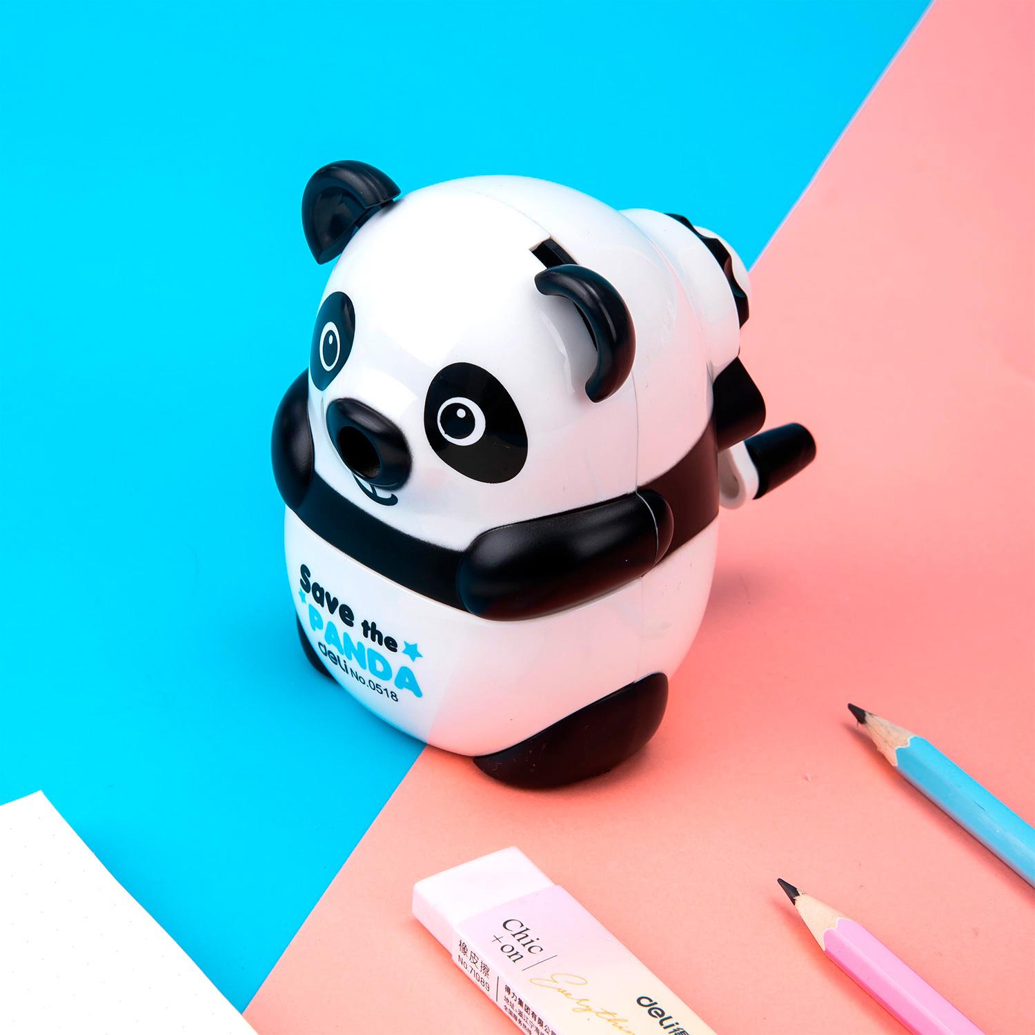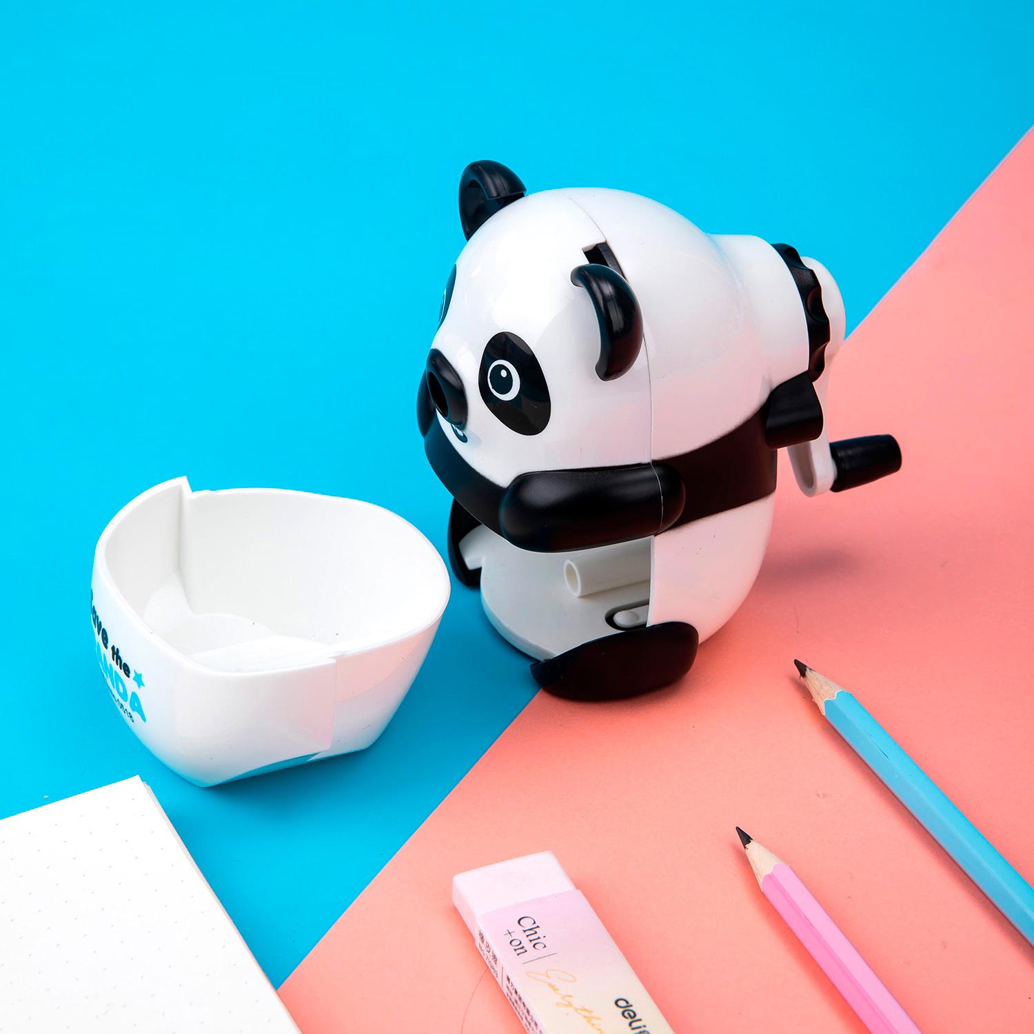 Точилка для карандашей механическая Deli Панда E0518 1 отверстие пластик черный / 4dealer.ru