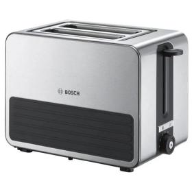 Тостер Bosch TAT7S25 в корпусе из нержавеющей стали обладает компактными размерами и рассчитан на два ломтика хлеба. Автоматическое центрирование тостов гарантирует качественную равномерную прожарку, а 6 уровней мощности подобрать нужный режим. Съемный поддон для крошек обеспечивает легкую чистку устройства.