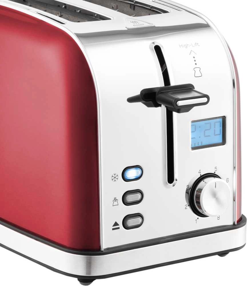 Оставшееся время показывается на жидкокристаллическом дисплее и позволяет рассчитать приготовление чашки кофе или чая, пока готовится тост. По окончании приготовления тостер автоматически отключается, а тосты поднимаются вверх, чтобы их было удобнее извлечь. Вы можете приготовить 1 или 2 тоста одновременно.
