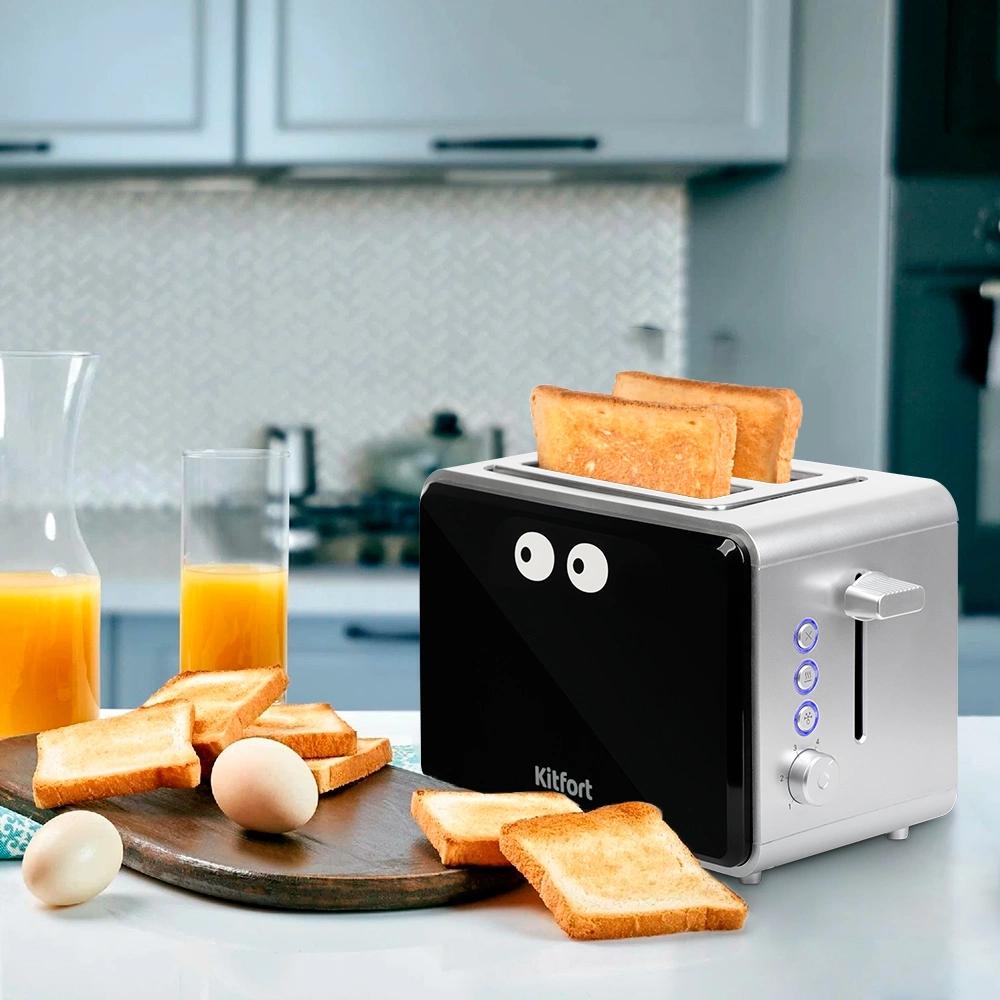 Тостер Kitfort КТ-2065 750Вт черный/серебристый / 4dealer.ru