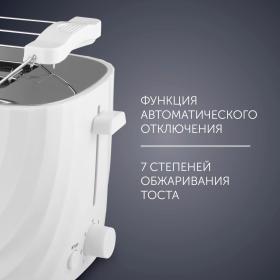 | Описание | Корпус из термостойкого пищевого пластика. 7 степеней обжаривания тоста. 2 отсека для тостов. Решетка для подогрева булочек. Отсек для наматывания шнура. Кнопка отмены. Поддон для крошек. Функция автоматического отключения. |