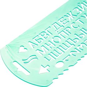 Трафарет букв и цифр Стамм ТТ31 пластиковый зелёный<br><br>С помощью трафаретов дети научатся обводить контуры букв и символов. Содержит 56 элементов. Все буквы русского алфавита, цифры, 6 типов подчёркивания, элемент «фигурная скобка», 9 специальных символов.<br>Размер трафарета в мм: 86×220×1,9. Высота букв (кроме Щ Ц Д) и цифр в трафарете 12 мм.