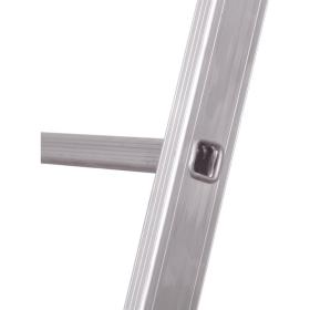 Стойки и ступени изготовлены из прессованного профиля. Многократная развальцовка в соединении ступеней со стойками обеспечивает высокую прочность и долговечность. Лестница имеет рифлёные ступени для безопасного подъёма и спуска.Алюминиевые направляющие кронштейны надёжно удерживают выдвижную секцию во всех рабочих положениях. Зацепы - с автоматическим фиксатором.