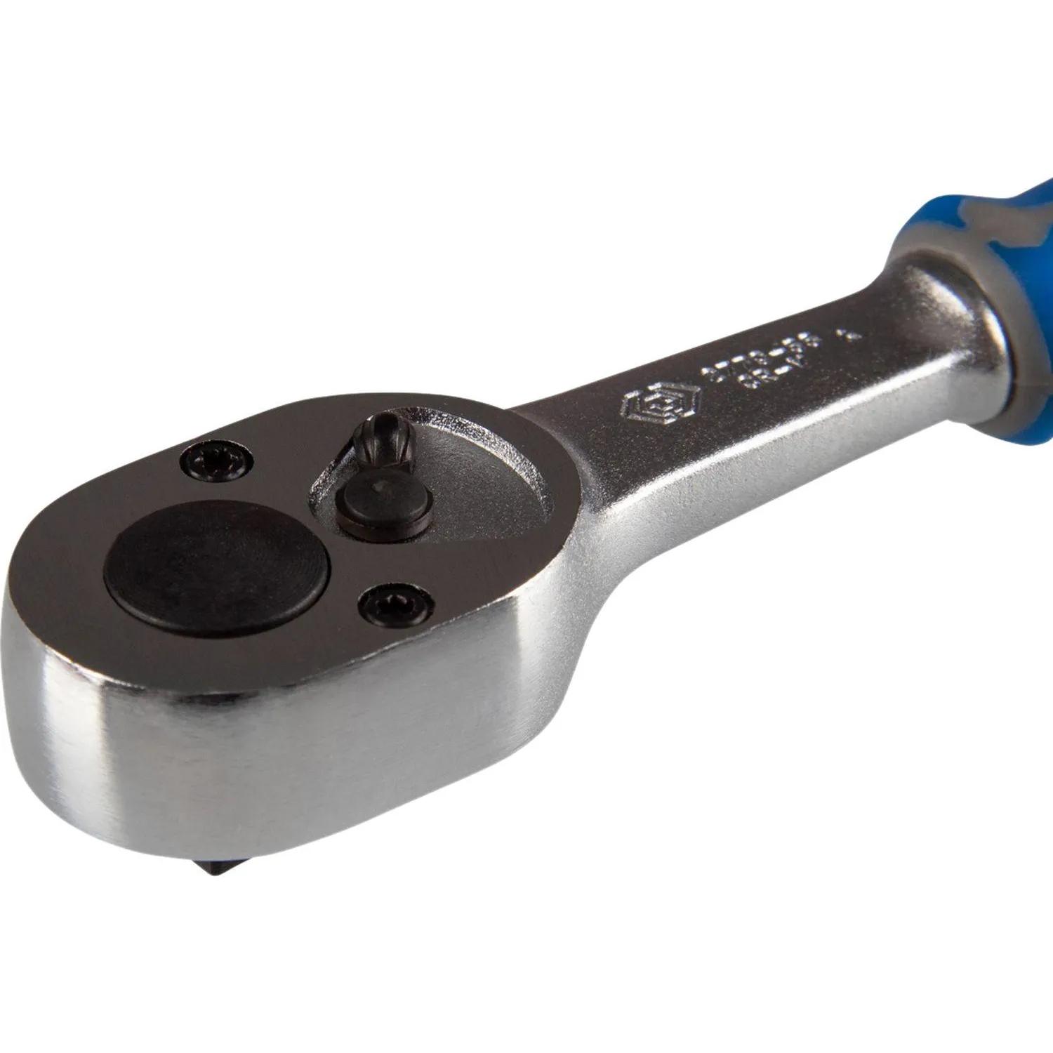 Трещотка King Tony 2779-55G предназначена для работы совместно с торцевыми головками, которые присоединяются при помощи посадочного квадрата для монтажа и демонтажа крепёжных узлов различных размеров. Трещоточный механизм ключа позволит работать им не отрывая от закручиваемой детали. Резиновая накладка на ручке не позволяет инструменту скользить в руке. Имеет флажок реверса. Изделие отличается простотой и удобством в применении, поможет легко и быстро справиться с крепёжными работами как в быту, так и в профессиональной сфере деятельности.<br><br>Внешний вид и/или характеристики товара могут быть изменены производителем в соответствии с производственным процессом.