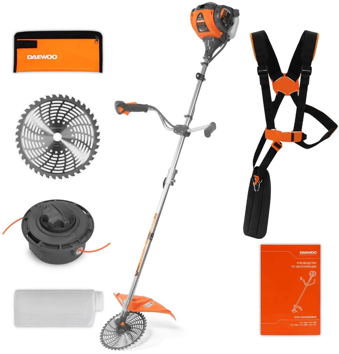 | Особенности | 4-х тактный бензиновый двигатель DAEWOO; Эргономичный рычаг управления двигателем; Режущий диск и леска в комплекте; Защитный кожух из ударопрочного ABS-пластика; Оптимальная балансировка; Система гашения шума и вибрации; 3-х летняя гарантия Daewoo |