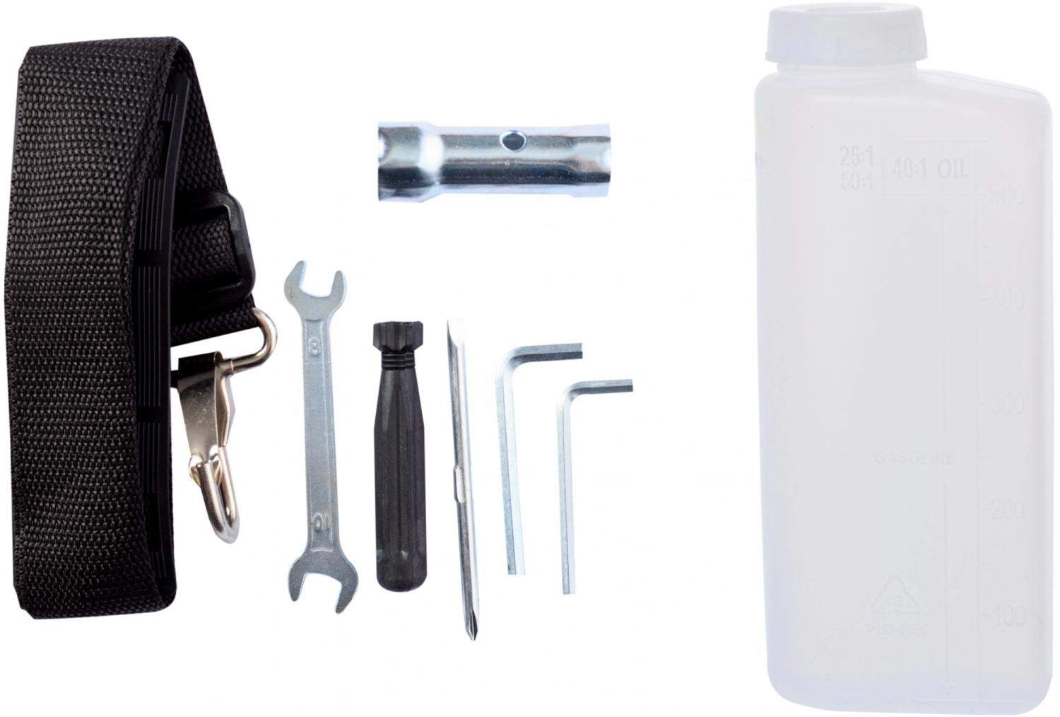 | Комплект поставки | Защитный кожух; Наплечный ремень одинарный; Шпулька с леской; 3х лопастной диск; Ёмкость для приготовления топливной смеси; Крепёж; Нож к защитному щитку; Шестигранный ключ 2 шт; Гаечный ключ; Свечной ключ; Отвёртка; Инструкция по эксплуатации |