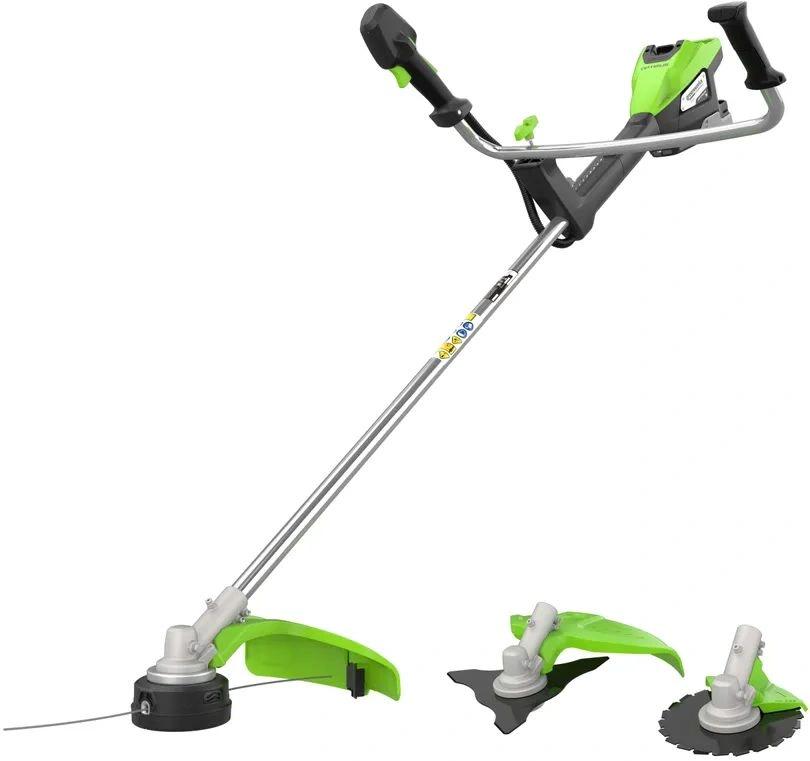 | Комплект поставки | Триммер аккумуляторный Greenworks TB201H, Арт. 2112407, 82V, Трехлопастной нож, Диск-кусторез, Ранцевый ремень, Руководство по эксплуатации,гарантийный талон, АКБ 8Ач, зарядное устройство |