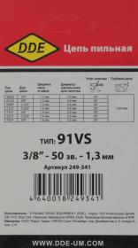 | Описание | Цепь пильная в кольце 249-341 DDE 91VS 3/8" - 50 - 1,3 мм |