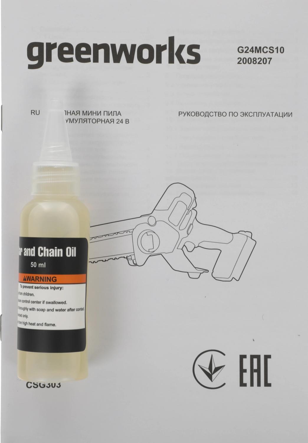 | Особенности устройства | натяжение и замена цепи без использования инструментов |