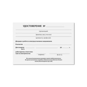 Бланк документа "Удостоверение допуска к работе на электроустановках" STAFF соответствует установленному образцу.Обложка из бумвинила приятна на ощупь и имеет эстетичный внешний вид. Выполнена из качественного износостойкого материала кожзам, стойкого к многократному изгибанию и истиранию. В сочетании с книжным переплетом ей свойственна хорошая износоустойчивость. Такое изделие сохраняет целостность в течение долгого времени. Внутри удостоверение имеет бумажную вклейку из офсетной бумаги плотностью 60 г/м2 с графами для заполнения.