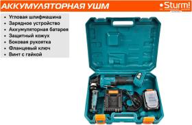 | Комплектация | Угловая шлифмашина Зарядное устройство Аккумуляторная батарея Защитный кожух Боковая рукоятка Фланцевый ключ Винт с гайкой |