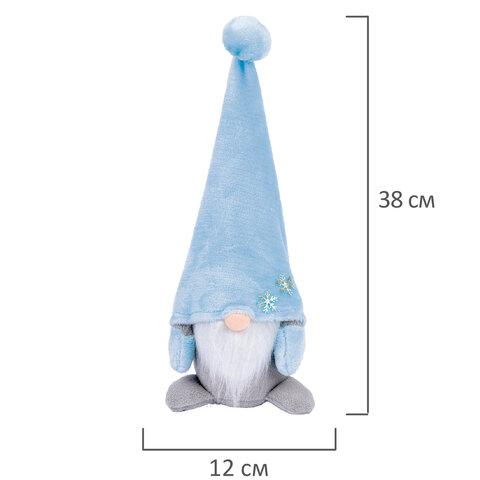 Украшение упаковано в пакет с клейким краем, а затем в прочный гофрокороб. Материал – полиэстер. Длина – 17 см, размер с вытянутой шапочкой – 38 см.
