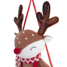 Новогоднее украшение интерьера в виде олененка на качелях ЗОЛОТАЯ СКАЗКА - это идеальный выбор для тех, кто хочет добавить в свой праздничный декор нотку волшебства и очарования.Невероятная интерьерная фигурка в виде олененка на качелях — идеальное украшение для вашего дома, которое добавит уют и тепло в любое пространство! Эта милашка высотой 40 см изготовлена из полиэстера, что делает её не только красивой, но и долговечной. Она станет настоящей изюминкой вашего интерьера, вызывая восхищение у всех гостей!