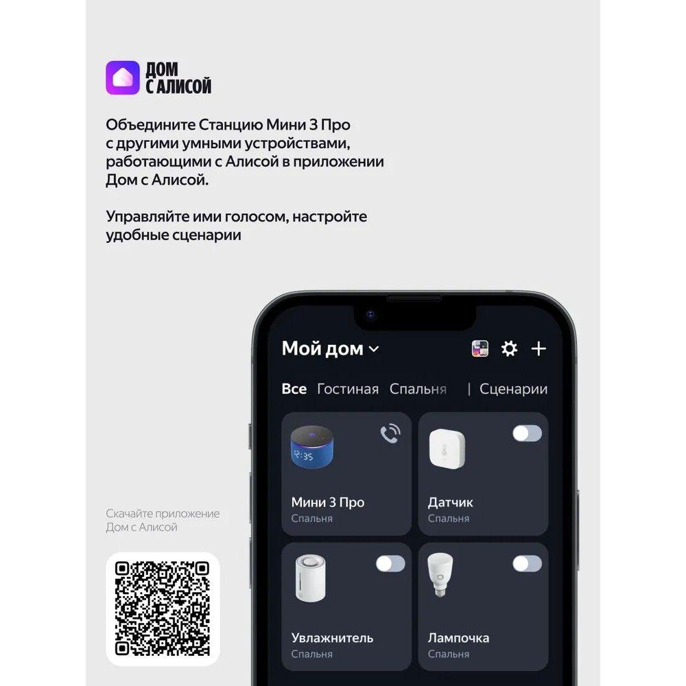Умная колонка Яндекс Станция Мини 3 Про с Алисой, Zigbee, синий ( YNDX00059BLU) / 4dealer.ru
