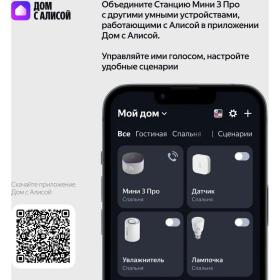 Умная колонка Яндекс Станция Мини 3 Про с Алисой, Zigbee, серый ( YNDX00059GRY)