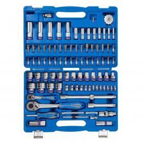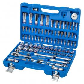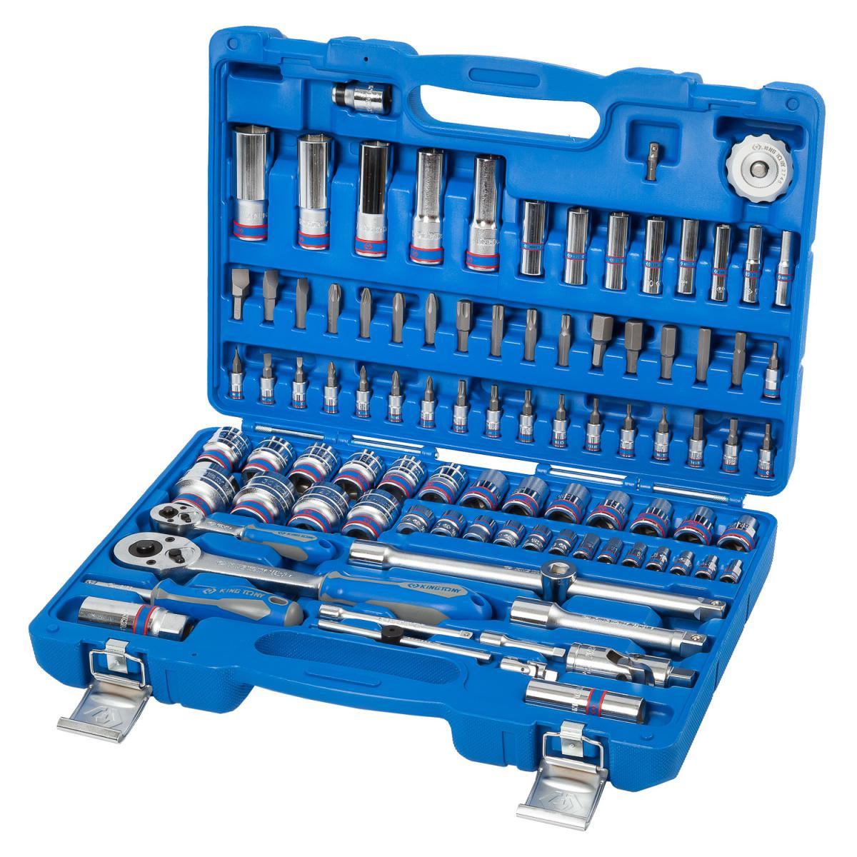 King Tony 7596MR — это набор инструментов состоящий из 96 предметов. Головки и принадлежности 2-х форматов присоединительного квадрата: 1/2″ и 1/4″. Широкий ряд торцевых насадок 1/4″ и вставок 5/16″. Глубокие торцевые головки форматов 1/2″ и 1/4″. Удлинитель 4222-10 + переходник 3824 — в сочетании эти два инструмента образуют многофункциональный Т-образный вороток для силовых работ с крепежом. Набор изготовлен из высокопрочной легированной хром-ванадиевой инструментальной стали, а хромированное покрытие защищает инструмент от коррозии. Для придания торцевым головкам особой прочности, в процессе изготовления применён метод ковки, что повышает прочность, а соответственно и надёжность инструментов." на «King Tony 7510MR — это новинка торговой марки King Tony в линейке универсальных наборов. Отличная комплектация набора делает его незаменимым помощником практически для любого применения. Головки и принадлежности 2-х форматов присоединительного квадрата: 1/2» и 1/4″. Кейс из пластика марки ABS: прочный, стойкий к воздействию агрессивных жидкостей, не теряет физических свойств при низких или высоких температурах окружающей среды. Набор изготовлен из высокопрочной легированной хром-ванадиевой инструментальной стали, а хромированное покрытие защищает инструмент от коррозии.<br><br>Комплектация<br>Головки и принадлежности 1/2″<br>— Головка торцевая стандартная 6-гранная: 10, 11, 12, 13, 14, 15, 16, 17, 18, 19, 20, 21, 22, 24, 27, 30, 32 мм;<br>— Головка торцевая глубокая 6-гранная: 14, 15, 17, 19, 22 мм;<br>— Головка свечная 6-гранная, резиновый фиксатор: 16, 21 мм;<br>— Трещотка флажковая с кнопкой 250 мм;<br>— Удлинитель 125 мм;<br>— Удлинитель-вороток 250 мм;<br>— Переходник 3/8″ на 1/2″;<br>— Кардан;<br>— Держатель вставок (бит) 5/16″;<br>Головки и принадлежности 1/4″<br>— Головка торцевая стандартная 6-гранная: 4, 4.5, 5, 5.5, 6, 7, 8, 9, 10, 11, 12, 13, 14 мм;<br>— Головка торцевая глубокая 6-гранная: 6, 7, 8, 9, 10, 11, 12, 13 мм;<br>— Трещотка флажковая с кнопкой 140 мм;<br>— Вороток скользящий Т-образный 115 мм;<br>— Трещотка бесшаговая, дисковый механизм, для вставок (бит);<br>— Удлинитель 50, 100 мм;<br>— Кардан;<br>— Отвёртка вороток 150 мм;<br>— Переходник для головок 25 мм;<br>Вставки (биты) 1/4″<br>— Крестовые Phillips: PH1, PH2;<br>— Крестовые Pozidriv: PZ1, PZ2;<br>— Шлицевые Slotted: 4, 5.5, 6.5 мм;<br>— Шестигранники HEX: H3, H4, H5, H6;<br>— 6-лучевая звезда TORX: T8, T10, T15, T20, T25, T27, T30;<br>Вставки (биты) 5/16″<br>— Крестовые Phillips: PH3, PH4;<br>— Крестовые Pozidriv: PZ3, PZ4;<br>— Шлицевые Slotted: 8×1.2, 10×1.6, 12×2.0 мм;<br>— Шестигранники HEX: H7, H8, H10, H12, H14;<br>— 6-лучевая звезда TORX: T40, T45, T50, T55;<br>Вспомогательный инструмент<br>— Шестигранники: 1.5, 2, 2.5.<br><br>Внешний вид и/или характеристики товара могут быть изменены производителем в соответствии с производственным процессом.