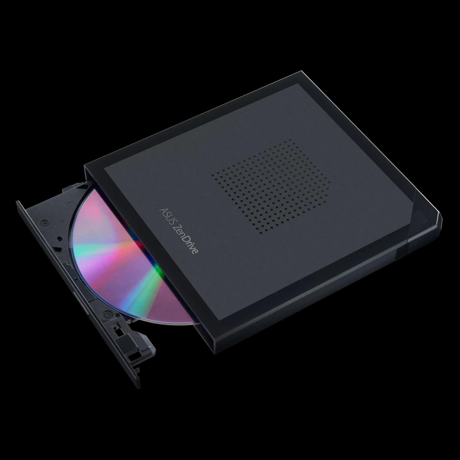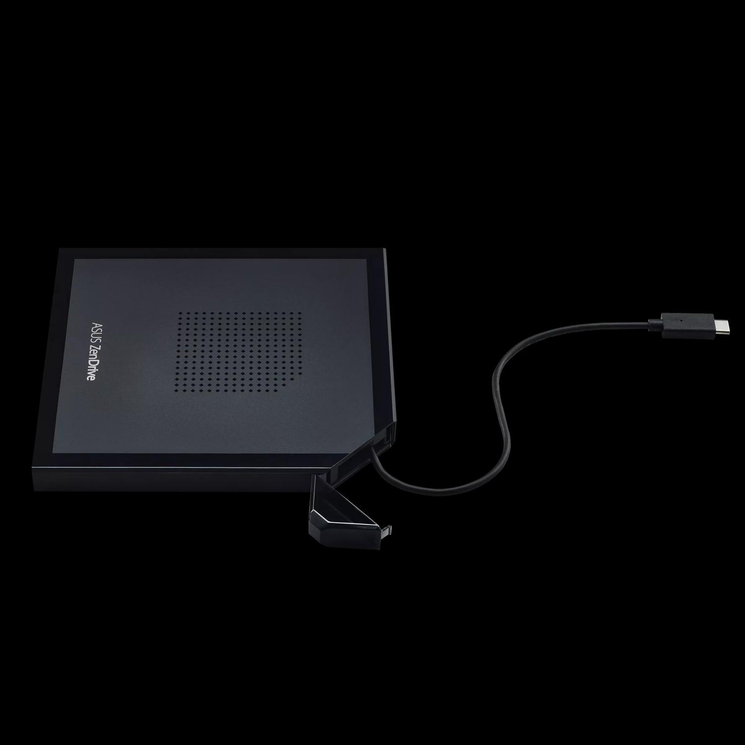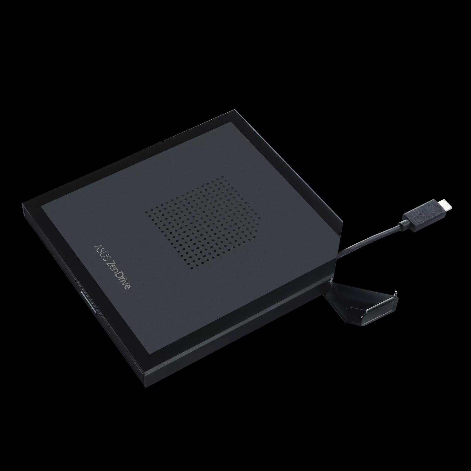 Внешний записывающий DVD-привод ASUS ZenDrive V1M: встроенный отсек для кабеля, интерфейс USB-C, совместимость с Windows 11 и macOS, поддержка носителей M-Disc, средства резервного копирования данных.