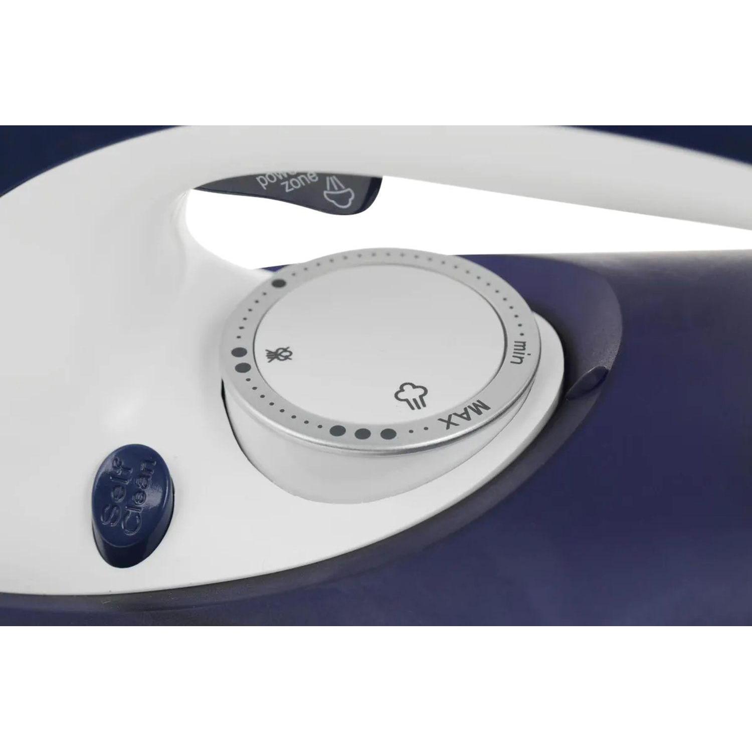 Потребляемая мощность 2200 Вт|Постоянная подача пара 30 г/мин|Паровой удар 90 г/мин|Емкость водяного бака 0.28 л|Длина провода 2.5 м|Цвет синий / белый|Размер 145х133х320 мм|Вес без упаковки 1.3 кг