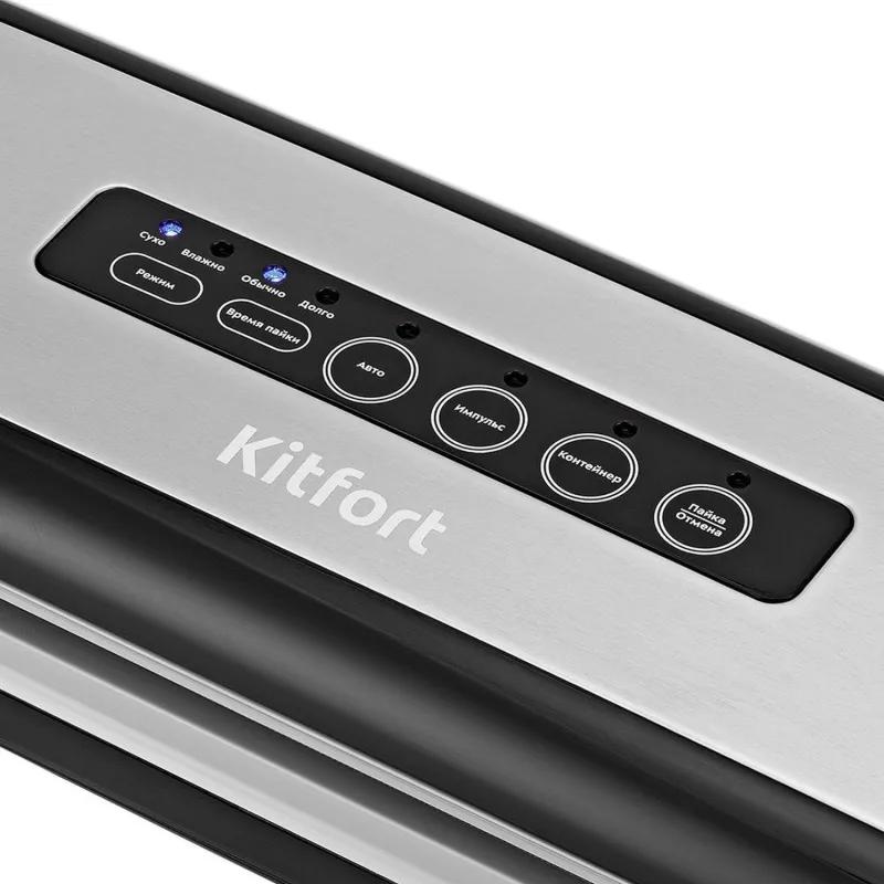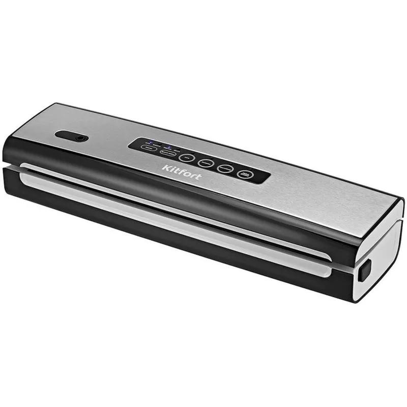 Вакууматор Kitfort КТ-1510 - современный прибор, призванный увеличить сроки хранения пищевых продуктов. Продукты, упакованные под вакуумом, сохраняют свежесть и не портятся существенно дольше по сравнению с обычными условиями хранения.Открытый край пакета укладывается под крышку прибора, после чего вакууматор начинает выкачивать из него воздух. В результате образования вакуума пакет плотно обжимает содержимое. Как только воздух удалён, начинается запечатывание открытой стороны пакета.