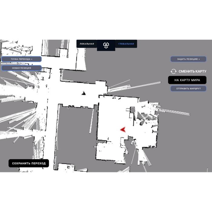 | Визуальное определение позиции робота на карте, оператор может визуально определить местоположение робота на глобальной карте, робот на карте отмечается специальным маркером. | |