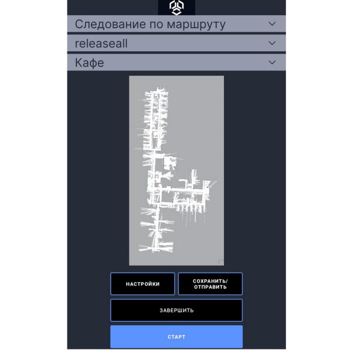 | Оператор имеет возможность выбирать карту и маршрут для робота из ранее сохраненных перед запуском программы, после запуска программы робот будет использовать карту и маршрут, определенный оператором. | |