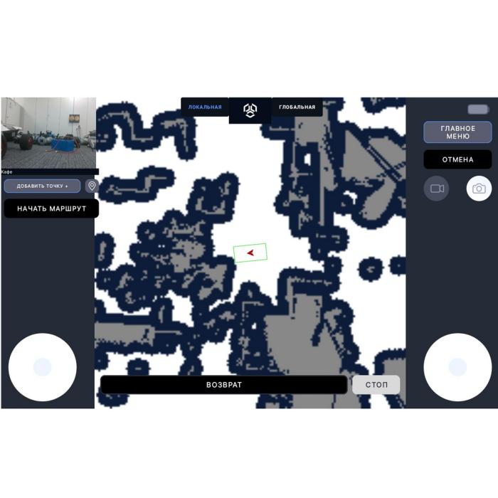 | Визуализация локальных и глобальных препятствий, оператор может визуально оценить препятствия, которые видит робот, как статические, так и динамические. | |