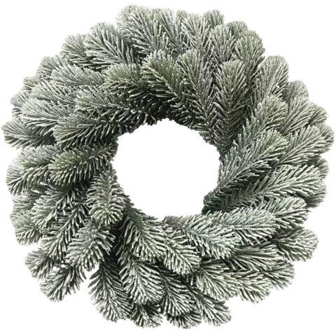 Материал – 100% литой ПЭТ. Цвет хвои – зелёный, заснеженный. Венок из литого ПЭТ зеленого цвета, заснеженный, выглядит как натуральная и создает особую праздничную атмосферу. На задней части основания венка расположено отверстие, за которое можно легко повесить венок на стену или дверь. Можно разместить не только на вертикальную, но и горизонтальную поверхность, сделав частью новогоднего украшения и декорации.