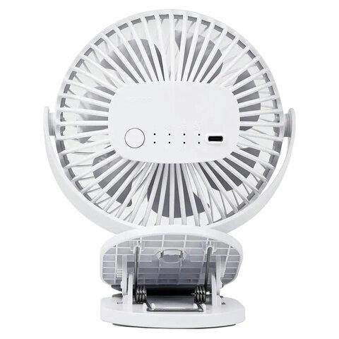 Прибор потребляет всего 5 Вт, обеспечивая экономичное и бесшумное охлаждение. Управление — механическое, интуитивно понятное даже для детей. Корпус выполнен из прочного пластика, а белый цвет придаёт устройству аккуратный и современный вид. Компактные размеры и небольшой вес делают вентилятор удобным в использовании и транспортировке.