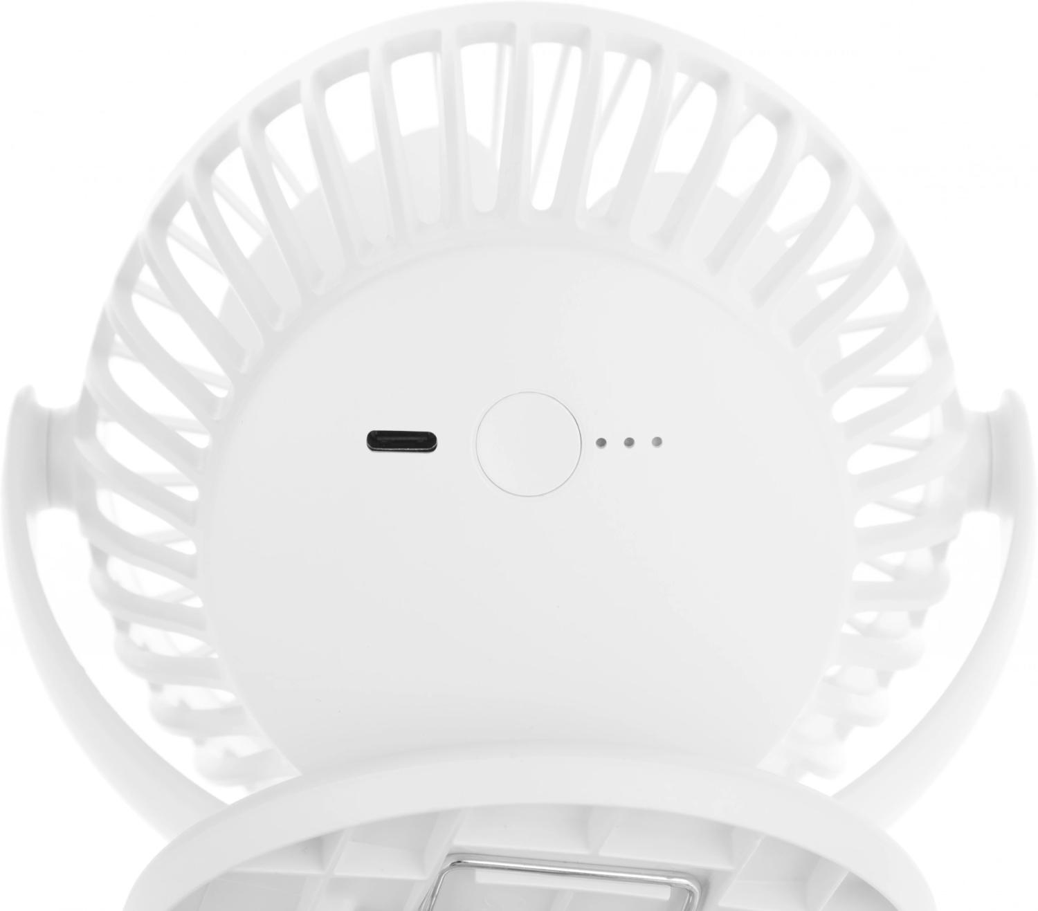 | Особенности | Вращение корпуса 360. Три скорости, зарядка от USB. Основание вентилятора представляет собой крепкий зажим с противоскользящим покрытием. Встроенный аккумулятор емкостью 2000 мА поддерживает работу вентилятора в течение 2-6 часов. Встроенный порт USB Type-C. Погружать корпус в воду запрещено. |