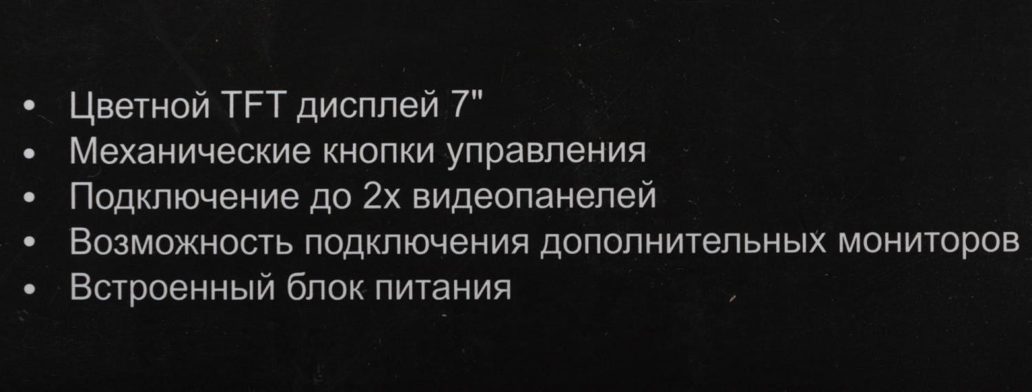 | Особенности | Поддерживает подключение 2-х вызывных панелей и 2-х дополнительных камер. Возможность подключения к подъездному координатному или цифровому домофону (с помощью блока сопряжения). Домофон имеет встроенный блок питания, что позволяет без проблем запитать его от сети 220В. |