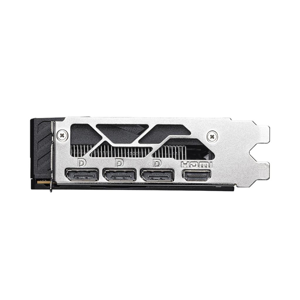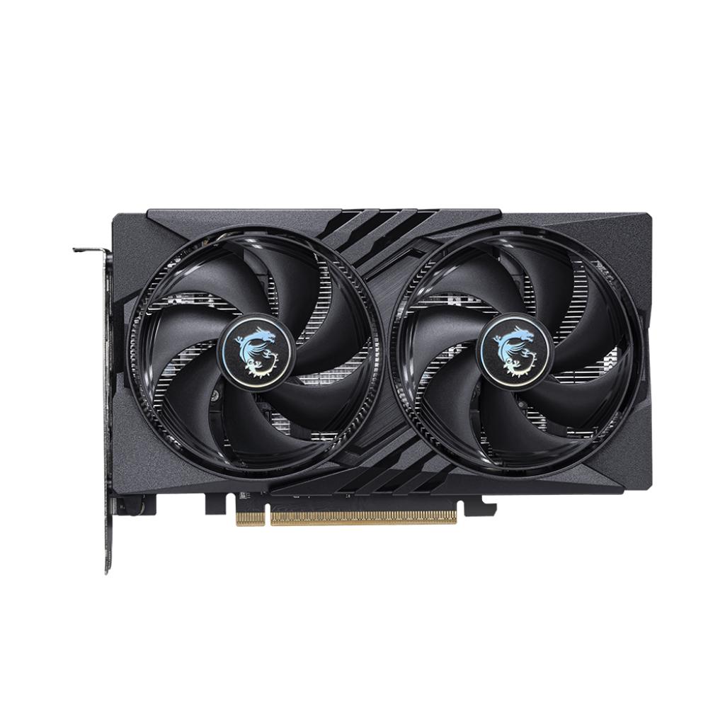 Видеокарта работает на базовой частоте 2632 МГц с возможностью разгона до 2647 МГц через MSI Center. Память GDDR6 объёмом 8 ГБ и 128-битная шина обеспечивают пропускную способность 20 Гбит/с, что гарантирует плавную работу в современных играх.