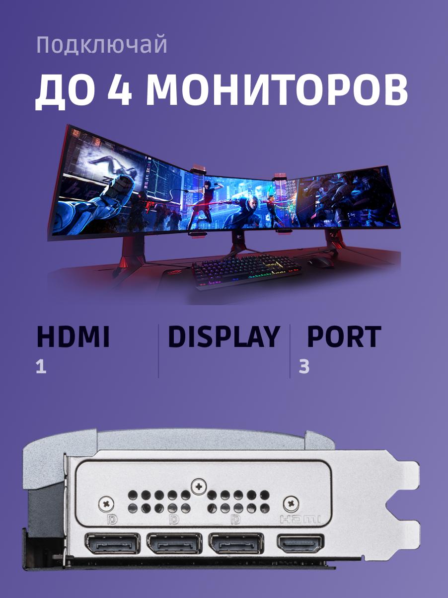 Конфигурация видеовыходов DisplayPort x 3 (v2.1b) HDMI x 1 (Как указано в HDMI 2.1b: до 4K 480 Гц или 8K 120 Гц с DSC, Gaming VRR, HDR)