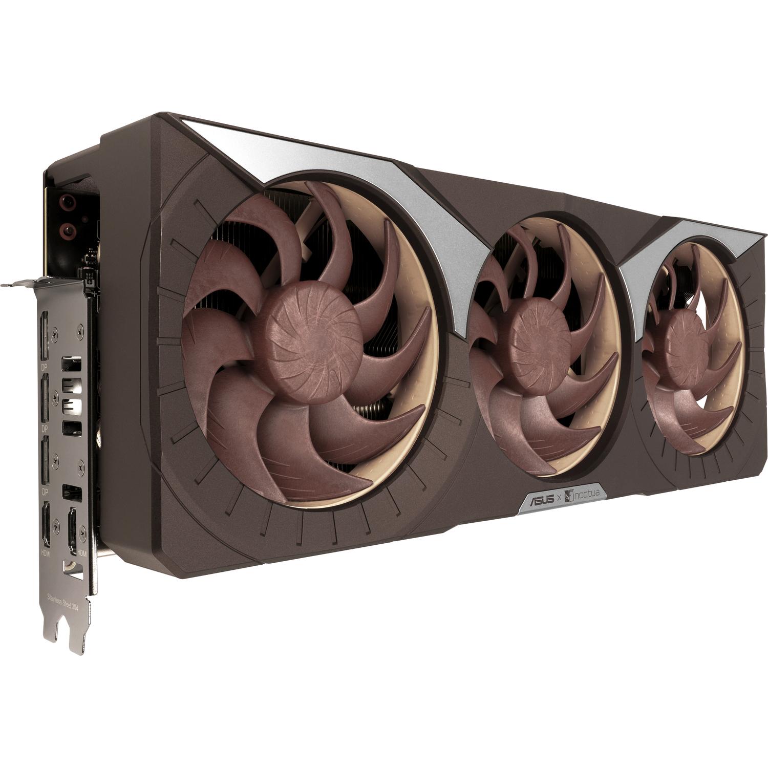 Три вентилятора Noctua NF-A12x25 G2 диаметром 120 мм обеспечивают превосходное охлаждение с минимальным уровнем шума. Оптимизированная испарительная камера эффективно отводит тепло от графического процессора и распределяет его по массивному радиатору, что предотвращает перегрев даже в условиях длительных игровых сессий или интенсивных вычислений. Термопрокладка с фазовым переходом заполняет микроскопические зазоры между GPU и системой охлаждения, повышая теплопроводность и снижая температуру ядра для стабильности работы.